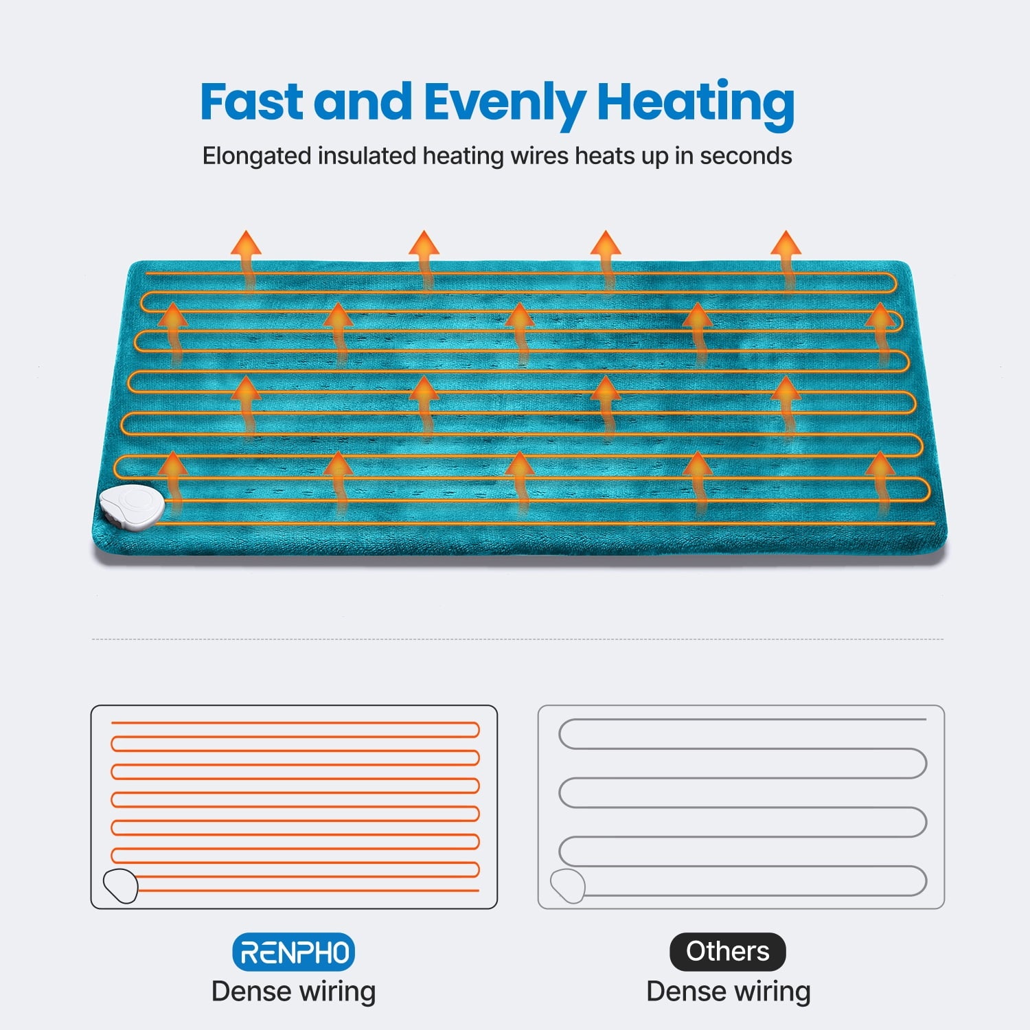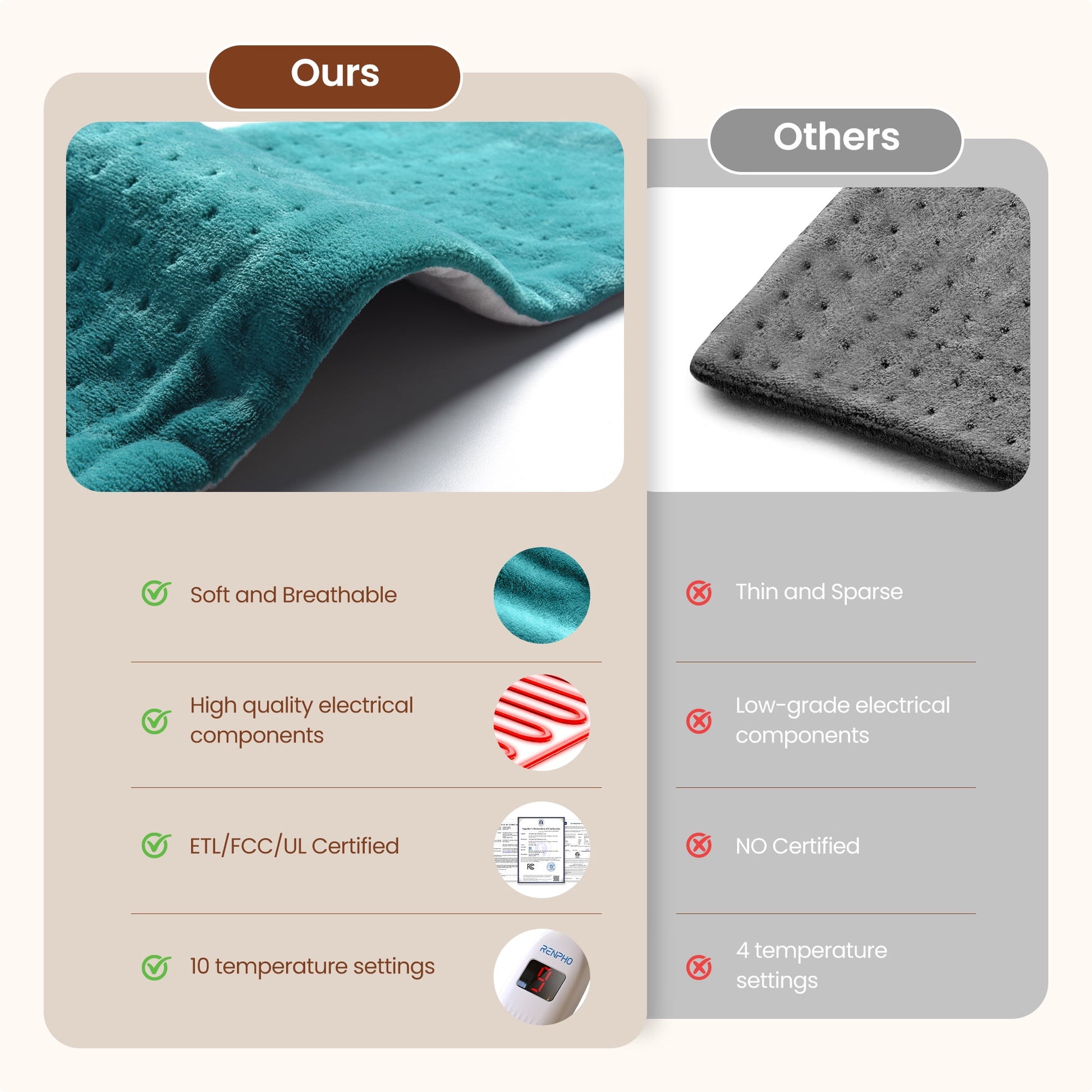 Ultra-soft electric heating pad with 10 heat settings, an auto-off timer, and is machine washable. The heat pad is X-large in size with built-in evenly distributed heating wires for fast heating. It can effectively stiffness in different parts of the body including the neck, back, shoulders, abdomen, legs, arms, joints, knee and spine.� This heating pad is ideal for people who experience discomfort from prolonged sitting or standing, exercising, or other physical activity. It is the perfect gift for Valentine's Day, Birthday, Mother's Day, Father's Day, Christmas, Anniversary and other special occasions.- Customizable heat, 10 heat levels for maximum comfort.